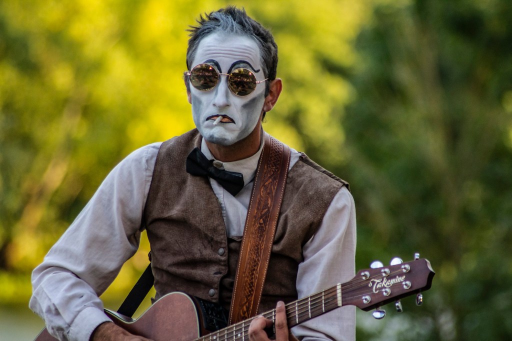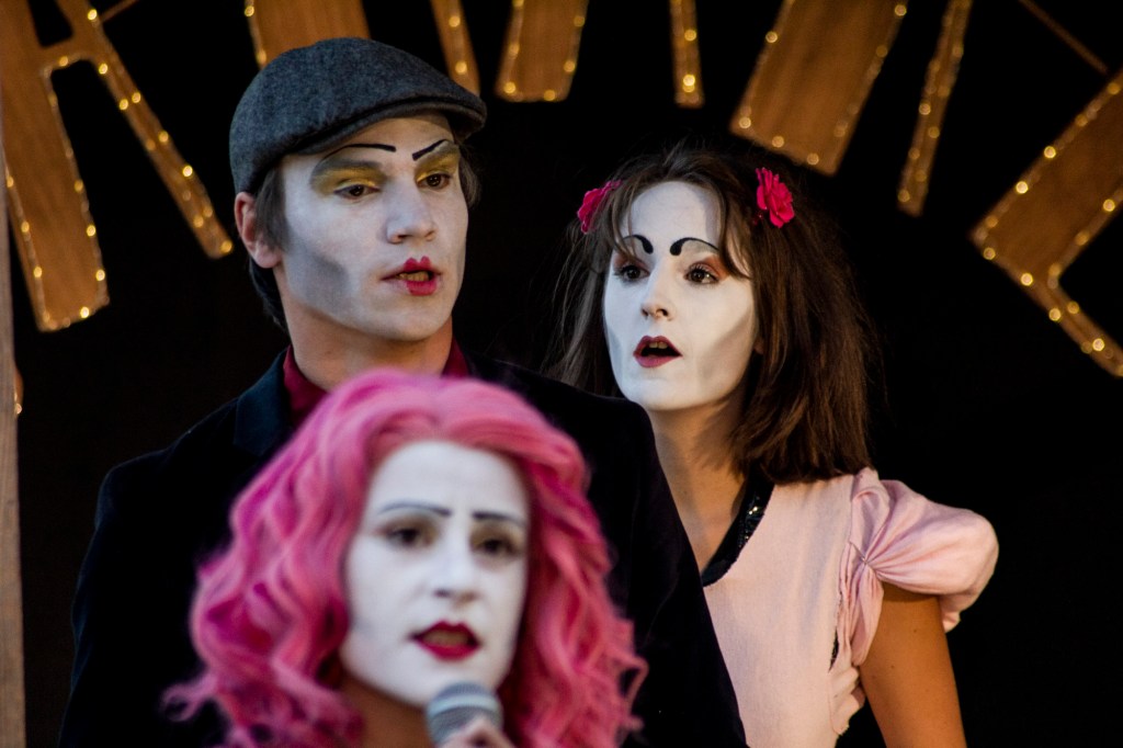 À la question: vous allez bien ? Chacun répondra naturellement oui. Par politesse, par convention, ou parce que c’est vrai tout simplement après tout pourquoi pas mais pas au Cabaret du Ravage ! Chez nous : « On ne peut pas dire, non tout va bien, ce serait mentir, oui, de le dire. » Ainsi, derrière nos maquillages, une première couche de blanc, puis de couleurs, puis de paillettes, derrière nos sourires redessinés, derrière nos tenues excentriques se révèlent notre ravage, chacun le sien. Derrière ces masques on peut s’amuser à tout grossir, s’amuser de ce que nous n’arrivons pas à ne pas être, et on en rit et ça nous fait du bien, et on le chante pour que tous ces mélanges volcaniques deviennent paillettes !